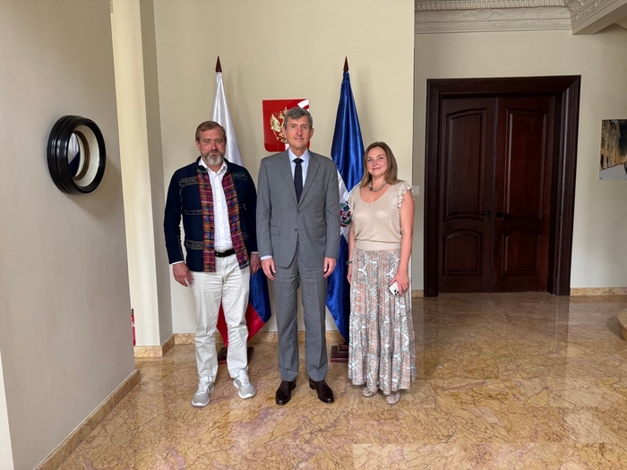 En la capital de la República Dominicana, Santo Domingo, la dirección de la Casa de América Latina mantuvo una fructífera reunión con el embajador de Rusia en la República Dominicana, Alexéi Víktorovich Seredin.